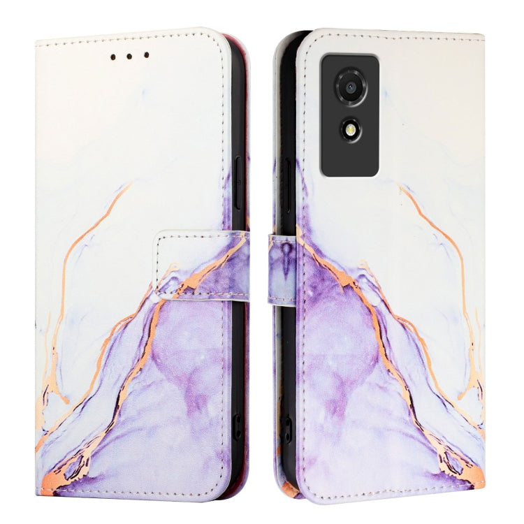 For TCL 501 PT003 Marble Pattern Flip Leather Phone Case(White Purple)