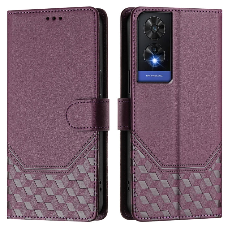 For TCL 505 Honeycomb Embossing RFID Leather Phone Case(Violet)