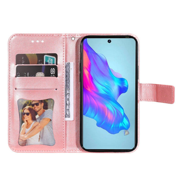 For Tecno Camon 18/18P 7-petal Flowers Embossed Flip Leather Phone Case(Rose Gold)