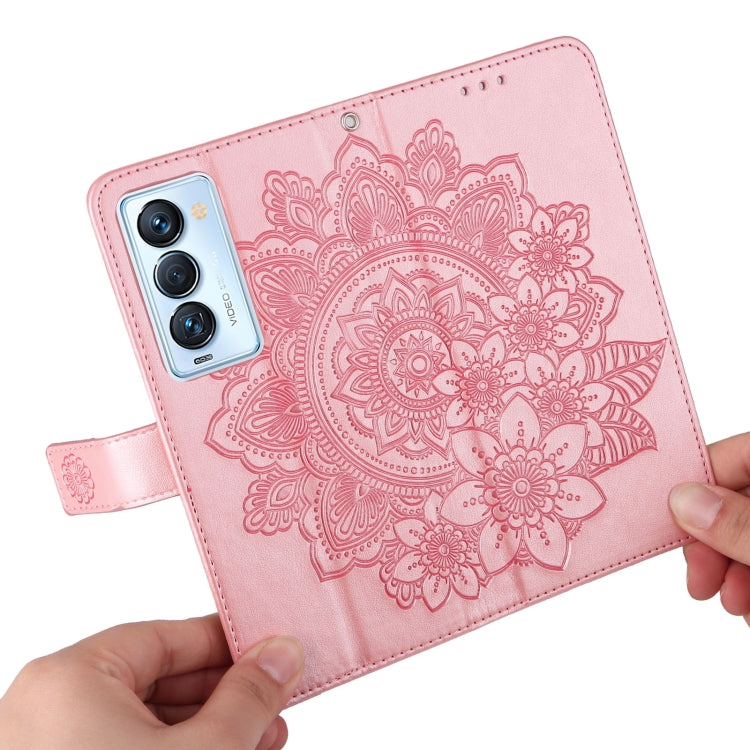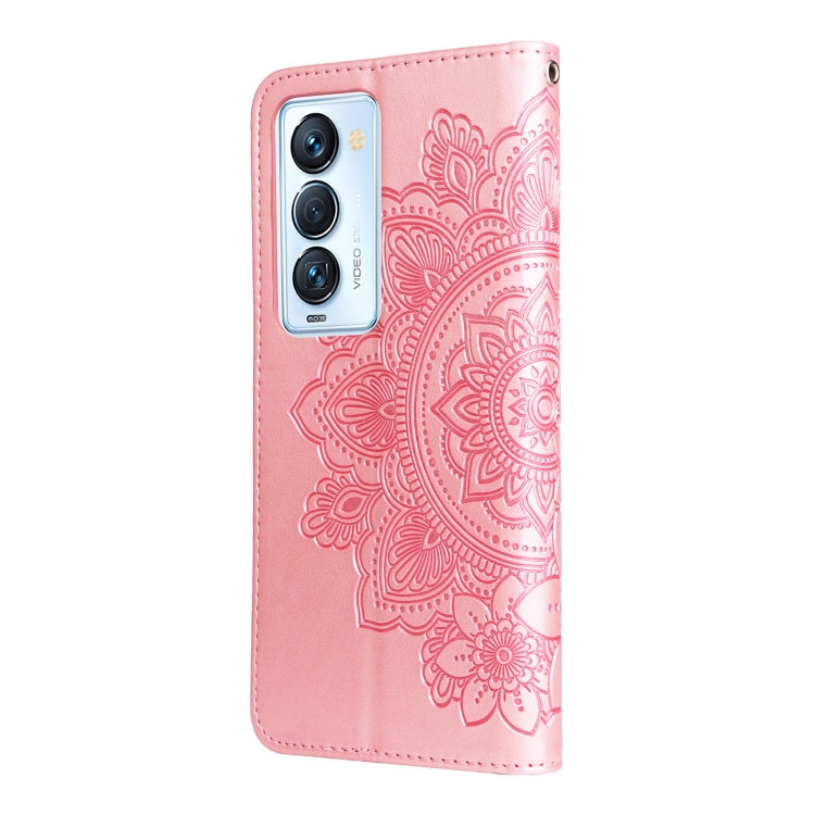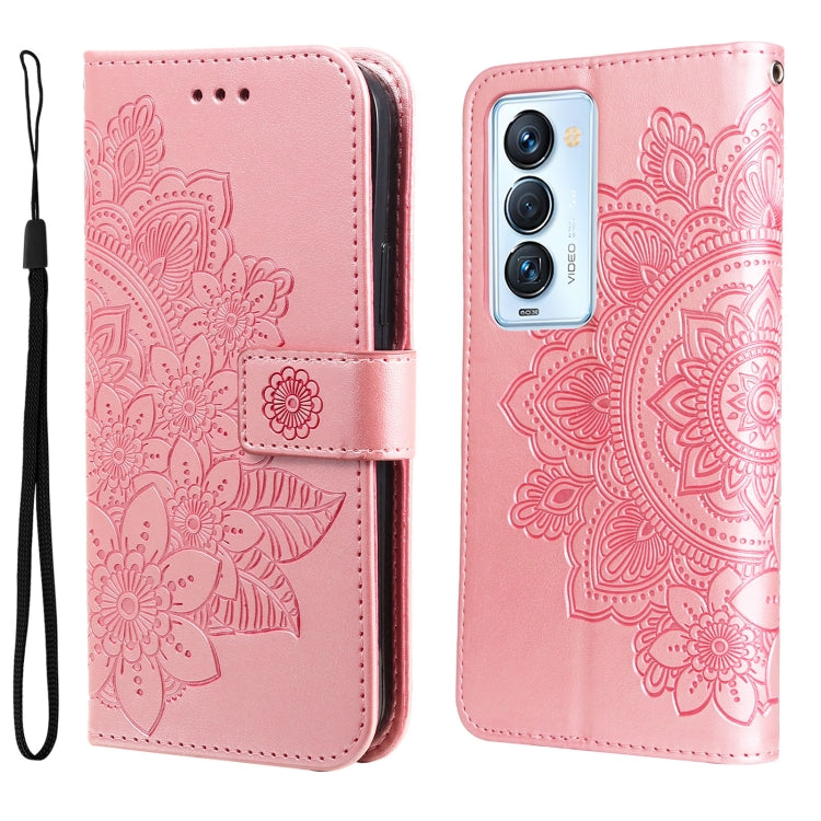 For Tecno Camon 18 Premier 7-petal Flowers Embossed Flip Leather Phone Case(Rose Gold)