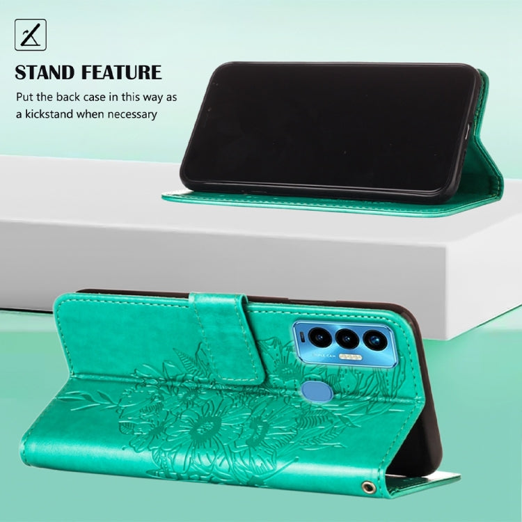 For Tecno Camon 18i Embossed Butterfly Leather Phone Case(Green)
