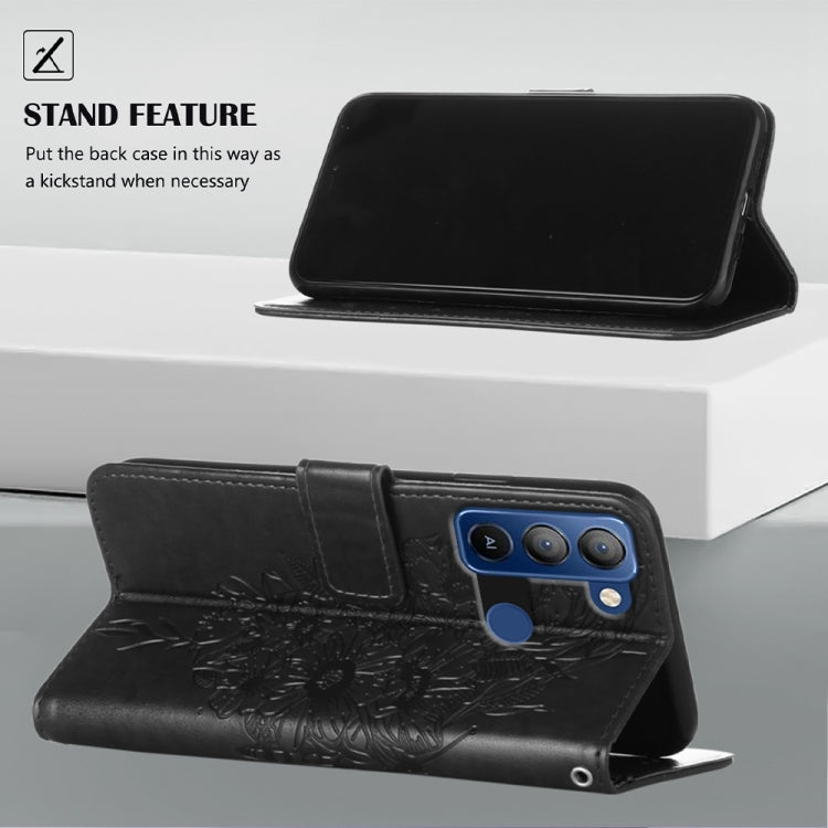 For Tecno Pop 5 LTE Embossed Butterfly Leather Phone Case(Black)