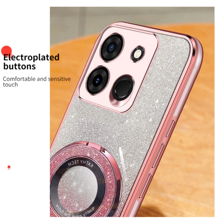 For Tecno Pop 7 Pro / Pop 7 Plated Gradient Glitter Round Holder TPU Phone Case(Sierra Blue)