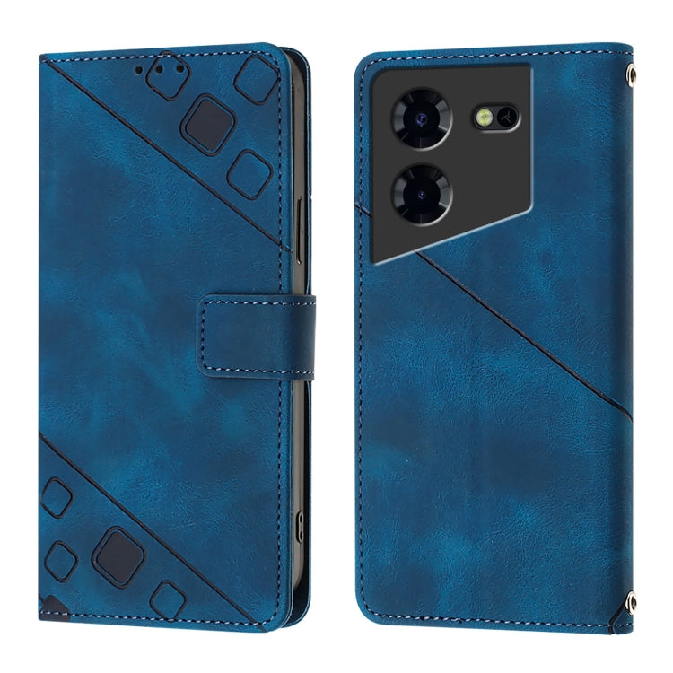For Tecno Pova 5 4G Skin Feel Embossed Leather Phone Case(Blue)