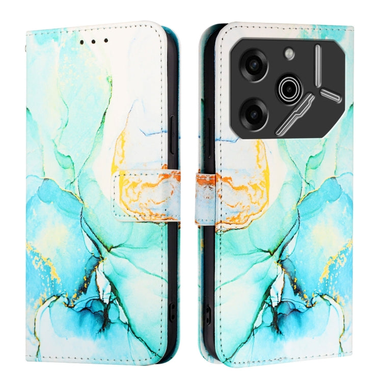 For Tecno Pova 6 5G PT003 Marble Pattern Flip Leather Phone Case(Green)