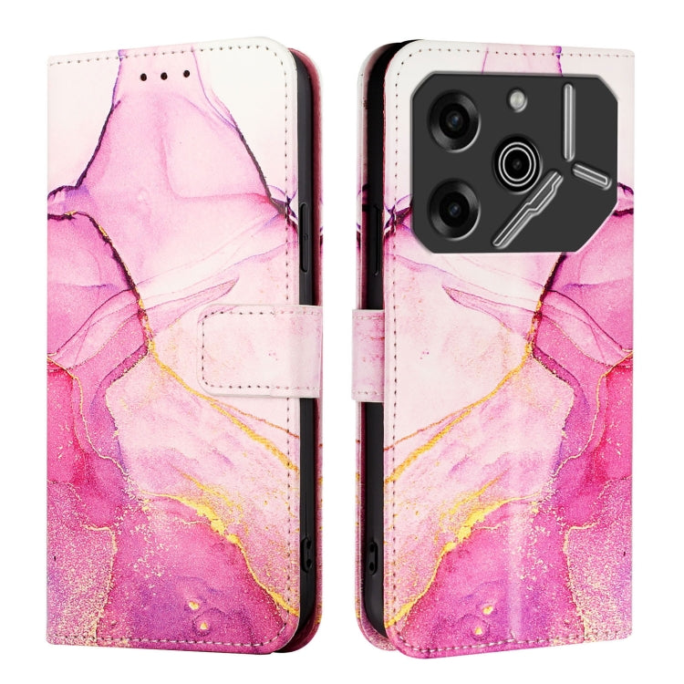 For Tecno Pova 6 Pro PT003 Marble Pattern Flip Leather Phone Case(Pink Purple Gold)
