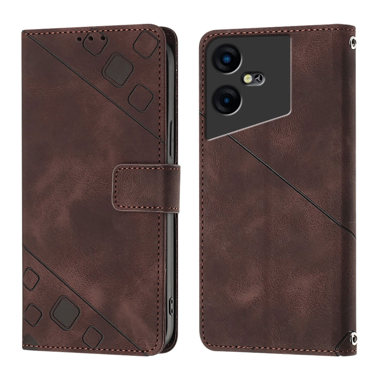 For Tecno Pova Neo 3 Skin Feel Embossed Leather Phone Case(Brown)