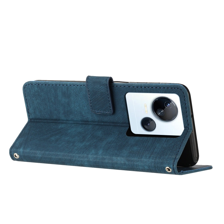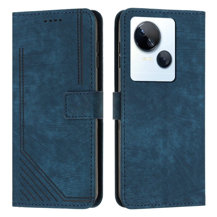 For Tecno Spark 10 5G Skin Feel Stripe Pattern Leather Phone Case with Lanyard(Blue)