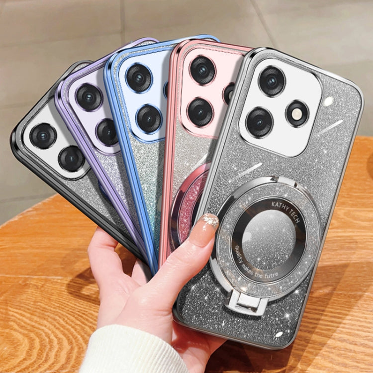 For Tecno Spark 10C Plated Gradient Glitter Round Holder TPU Phone Case(Silver)