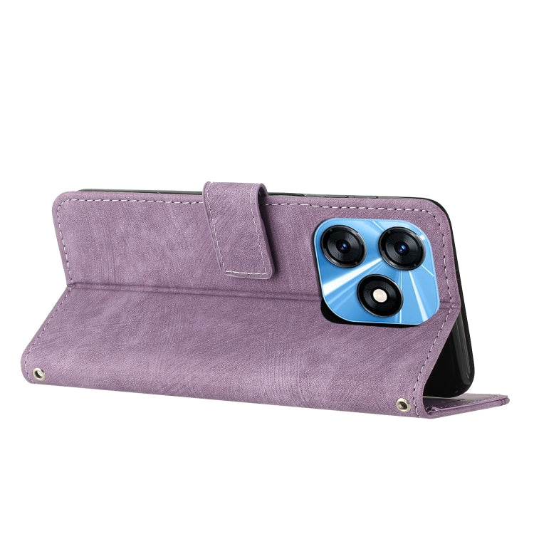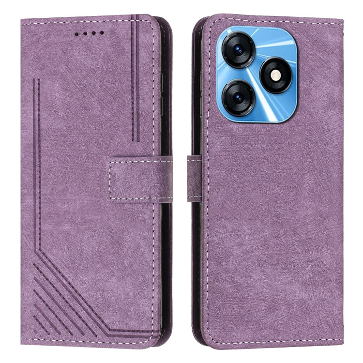For Tecno Spark 10C Skin Feel Stripe Pattern Leather Phone Case with Lanyard(Purple)
