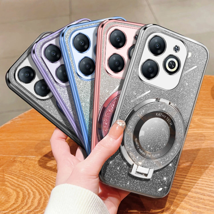 For Tecno Spark 20 / 20C / Pop 8 Plated Gradient Glitter Round Holder TPU Phone Case(Pink)