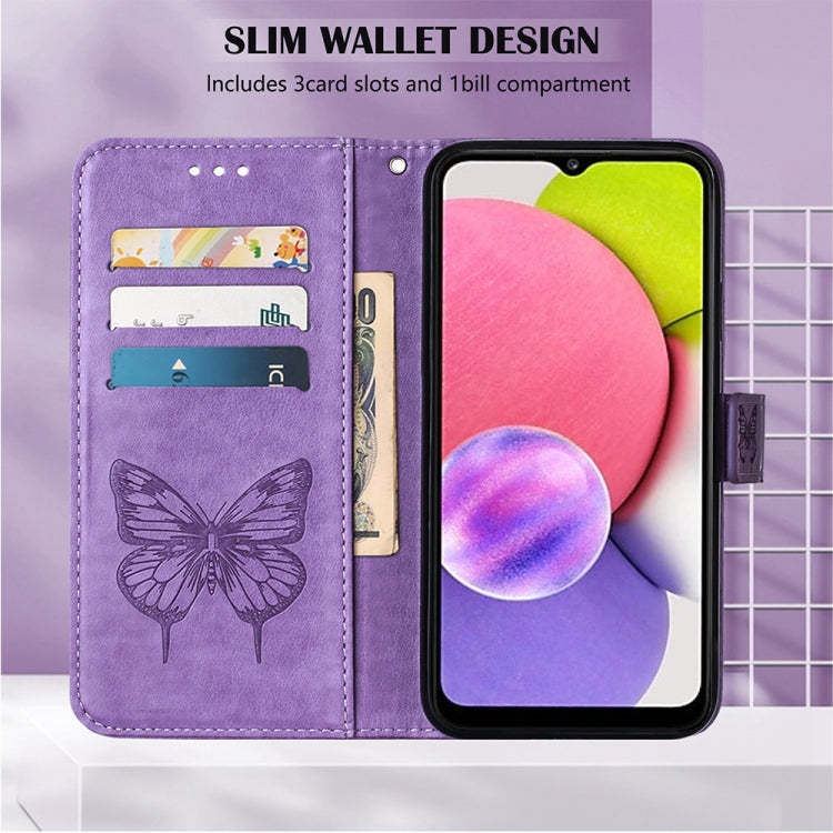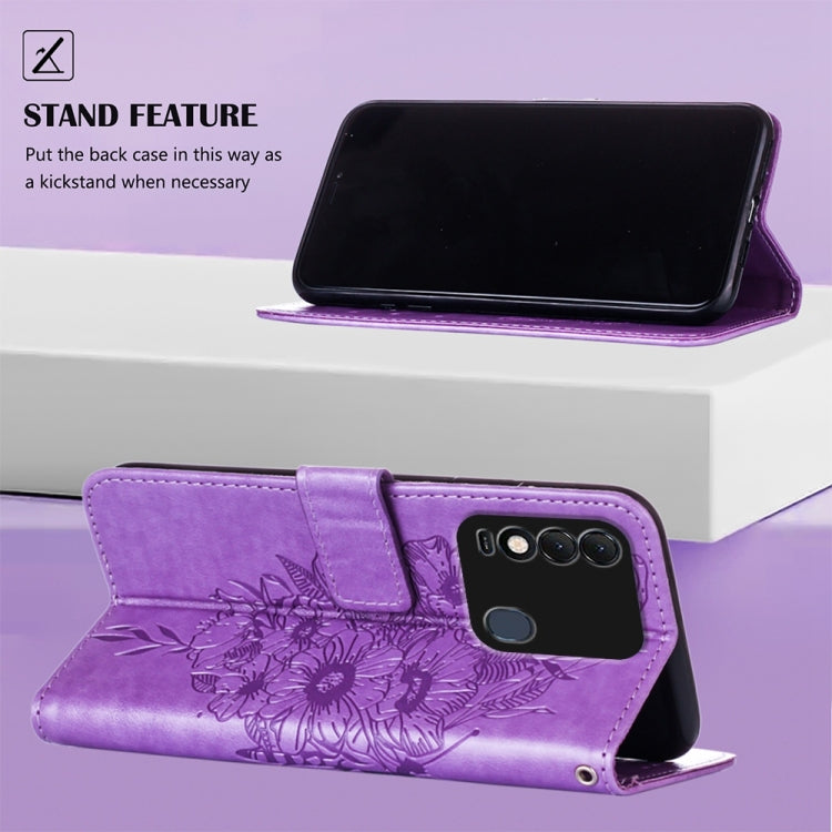 For Tecno Spark 8 Embossed Butterfly Leather Phone Case(Light Purple)