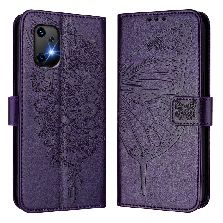 For UMIDIGI Bison X20 Embossed Butterfly Leather Phone Case(Dark Purple)