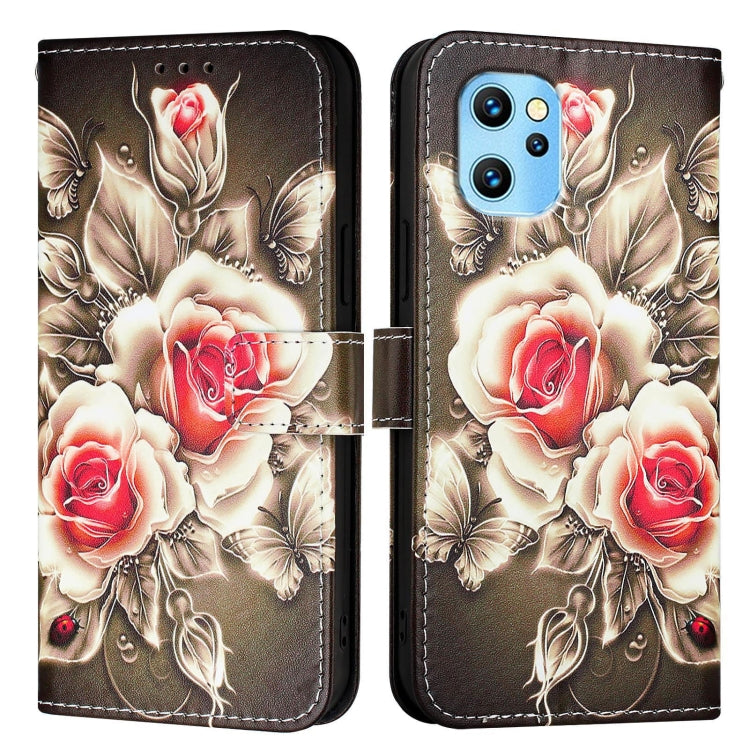 For UMIDIGI Power 7 Max Colored Drawing Pattern Plain Weave Leather Phone Case(Roses On Black)