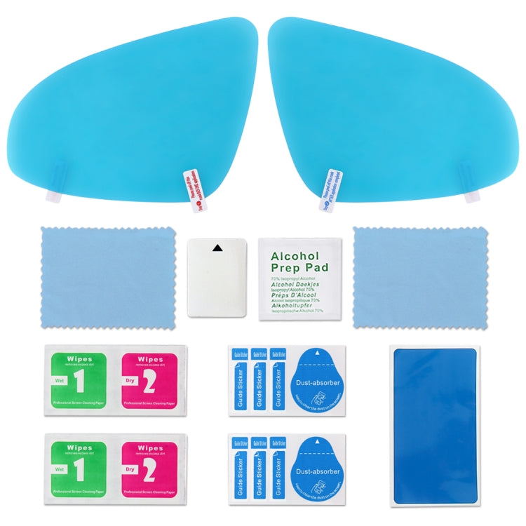 1. PET + Nano coating protective film with high transmittance, Anti-fog, anti-glare, anti-mist, waterproof, rainproof, which effectively protects your driving safety in a rainy or foggy day.