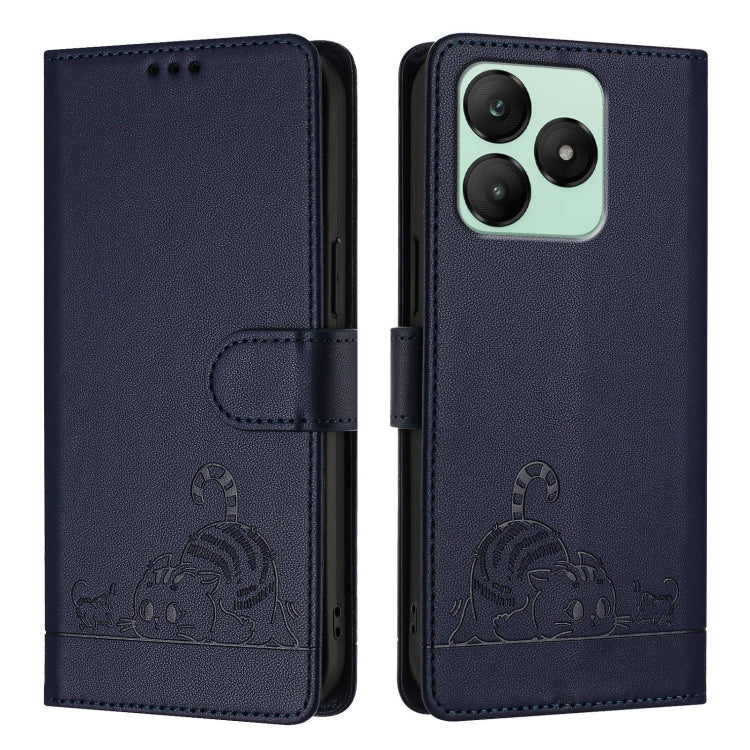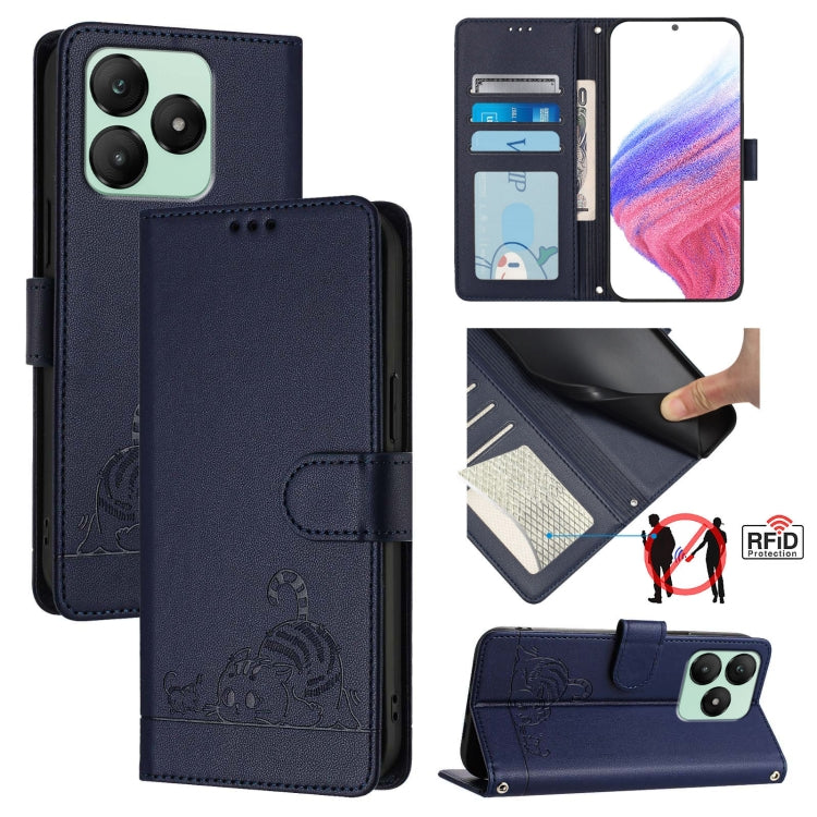 For Wiko T20 Cat Rat Embossed RFID Leather Phone Case with Lanyard(Blue)