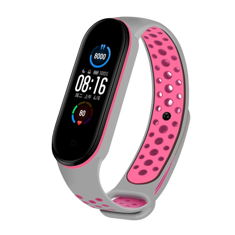 For Xiaomi Mi Band 5 Two-tone Silicone Breathable Watch Band(Gray Pink)
