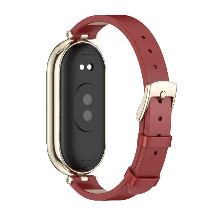 For Xiaomi Smart Band 10 / 9 / 8 Mijobs First Layer Cowhide Watch Band(Red Light Gold)