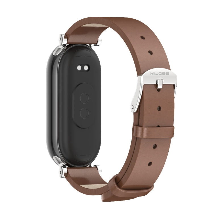 For Xiaomi Smart Band 10 / 9 / 8 Mijobs GT4 First Layer Cowhide Watch Band(Brown Silver)