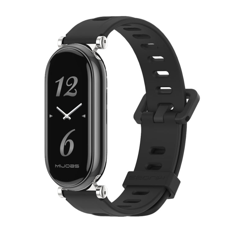 For Xiaomi Smart Band 10 / 9 / 8 Mijobs GT4 Flat Hole Silicone Watch Band(Black Silver)
