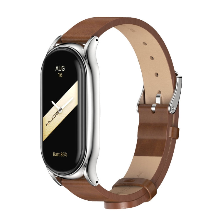 For Xiaomi Mi Band 8 Mijobs Plus Case Microfiber PU Leather Watch Band(Brown Silver)
