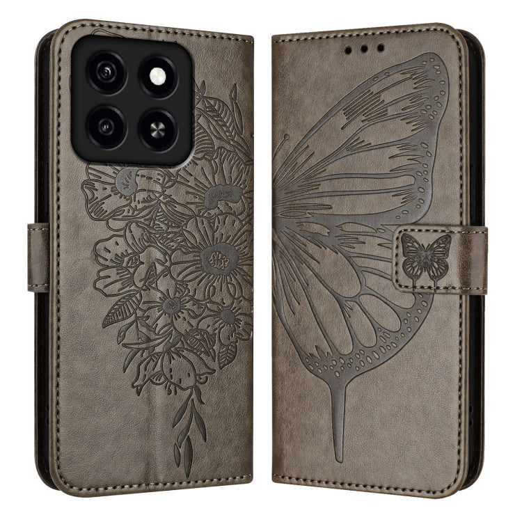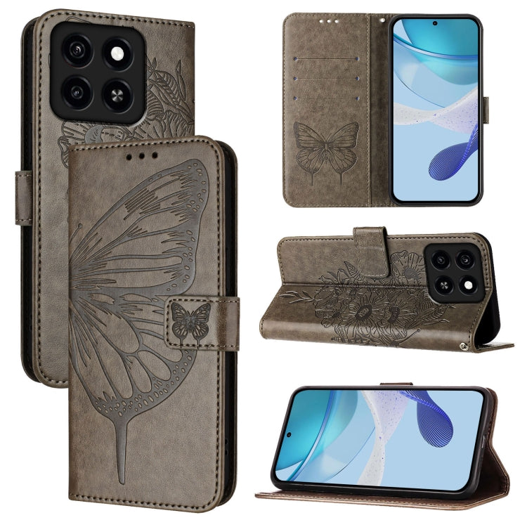 For ZTE Blade A35 / A55 Embossed Butterfly Leather Phone Case(Grey)