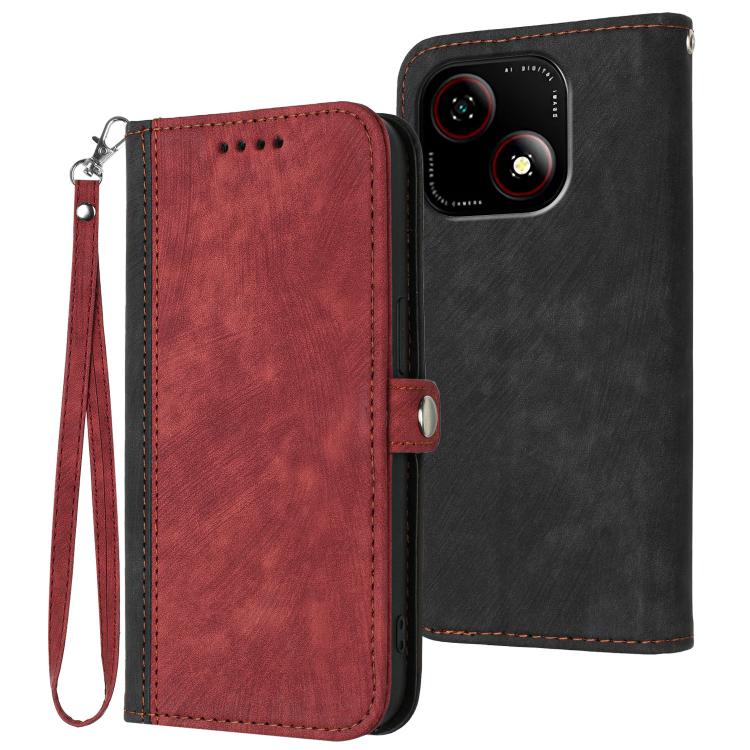 For ZTE Blade A35e 4G Side Buckle Double Fold Hand Strap Leather Phone Case(Red)