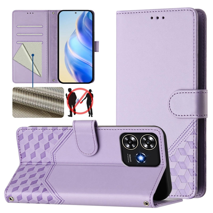 For ZTE Blade A73 4G Honeycomb Embossing RFID Leather Phone Case(Light Purple)