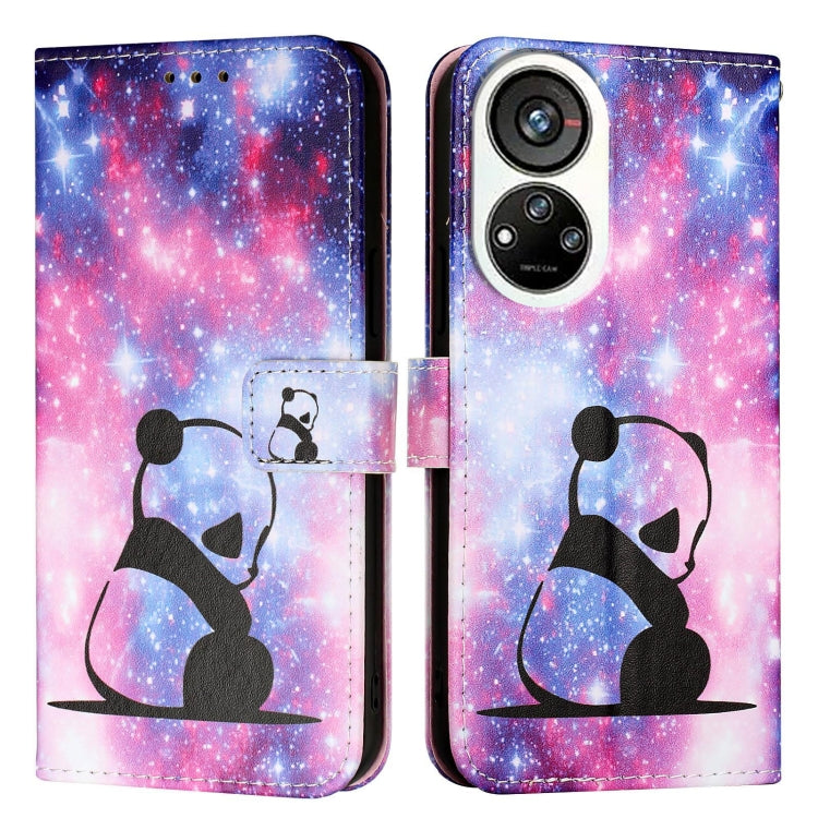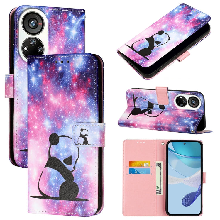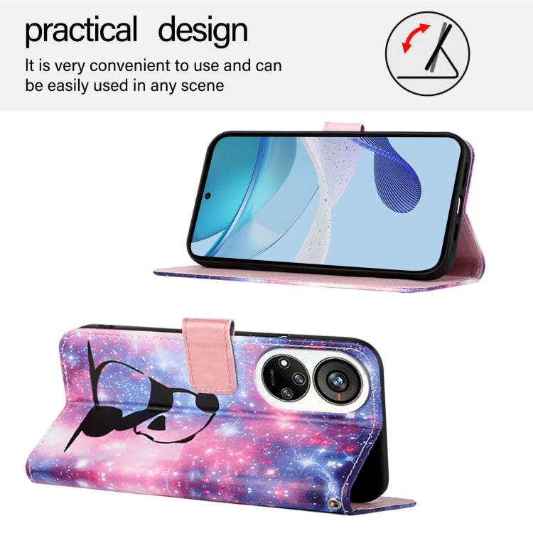 For ZTE Blade V40s Colored Drawing Pattern Plain Weave Leather Phone Case(Baby Panda)