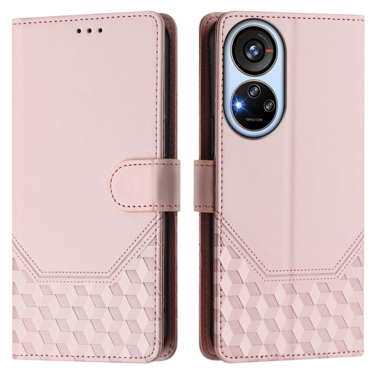 For ZTE Blade V40s Honeycomb Embossing RFID Leather Phone Case(Pink)