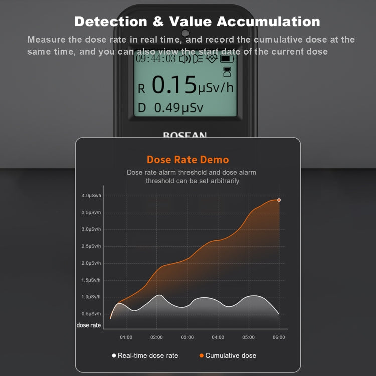 1. Measure the dose rate in real time and record the accumulated dose at the same time.