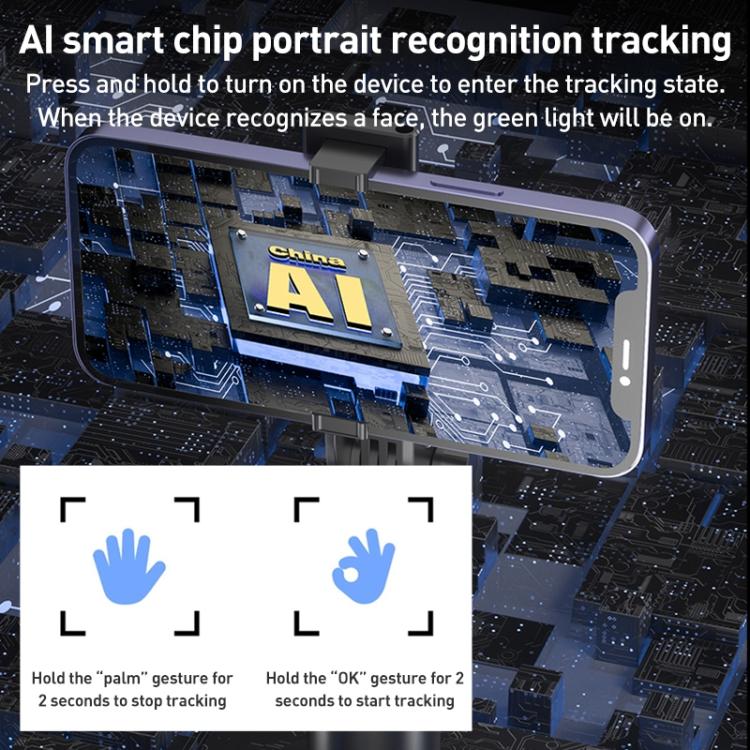 1. App-Free Operation: No need to download any app—power on for instant face tracking with 360 degree rotation and follow shooting.