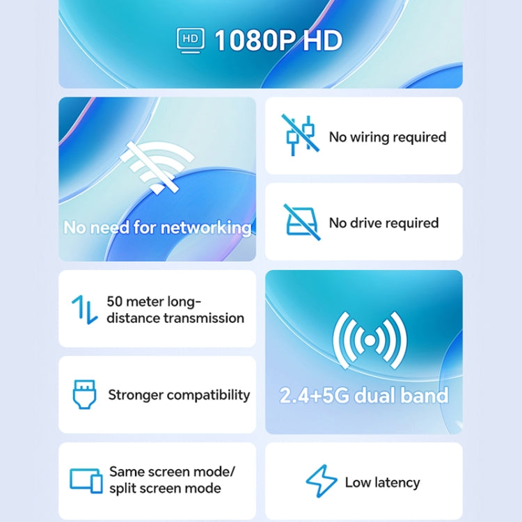 The USB-C wireless transmitter transmits high-definition audio and video signals via 5G WiFi. HD videos from PCs or mobile devices with full-featured functions are transmitted via WiFi, which can achieve one-to-one applications. The device has excellent image processing and transmission capabilities, making signal transmission smoother and more stable.