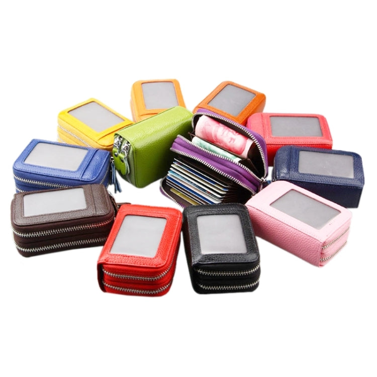 Genuine Leather Dual Layer Zipper Card Holder Wallet RFID Blocking Purse, Size: 10.5x7.0x4.0cm(Coffee)