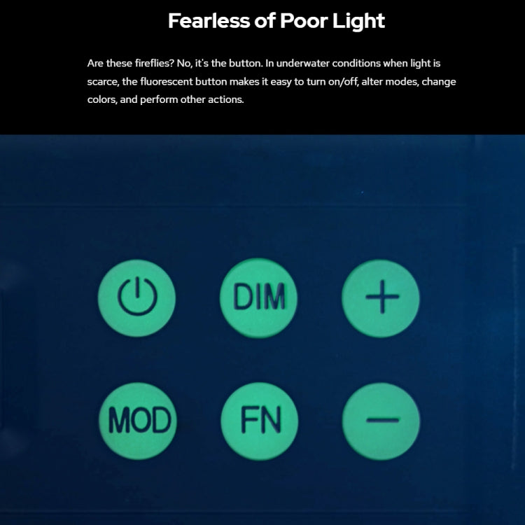 4. Thanks to its fluorescent buttons, the light can operate in complete darkness to reveal the wonders of sea life. A runtime of up to 2 hour assures you will have a bright, diffused, and even light throughout your dive.
