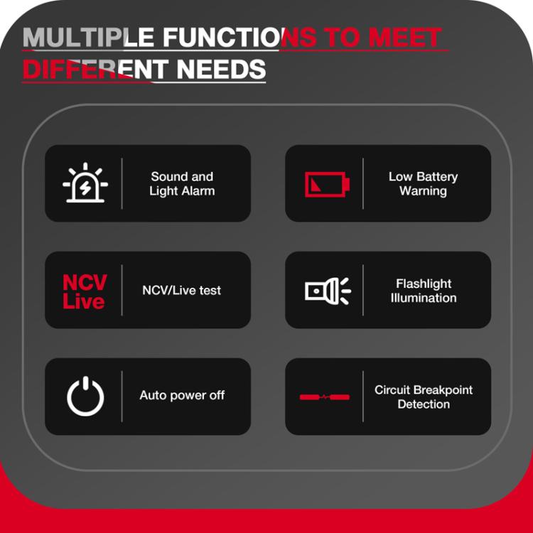 5. Auto Power Off: The voltage tester will automatically turn off after about 5 minutes of no signal detection or inactivity to prolong battery life