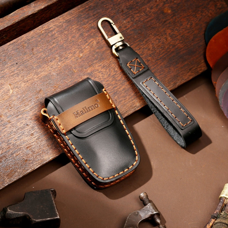 Hallmo Car Cowhide Leather Key Protective Cover Key Case for Toyota Corolla 2017 2-button(Black)
