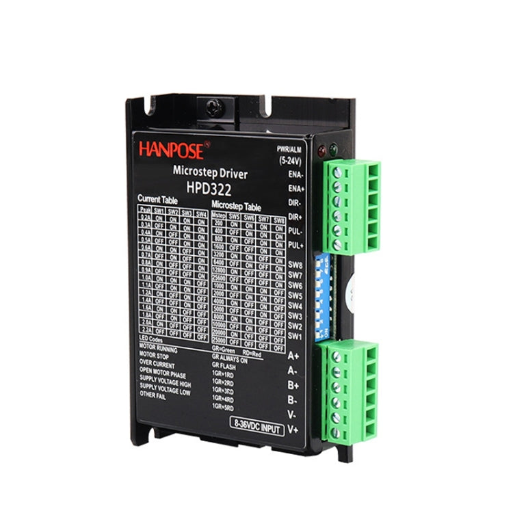 1. HPD322 two-phase stepper motor driver is a cost-effective subdivision driver designed based on PI flow control algorithm. It has excellent performance, high speed and large torque output, low noise, low vibration and low heat.