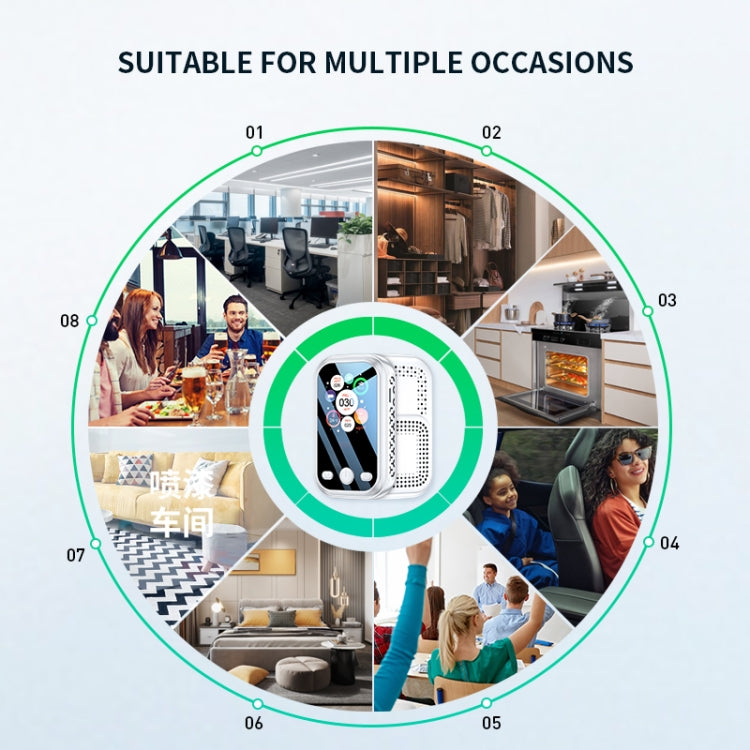 8. Ultra-high-definition color screen, equipped with high-precision sensors, real-time monitoring of PM1.0, PM2.5, PM10 is more accurate, and reading is more intuitive and convenient