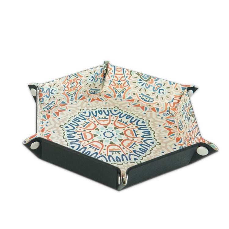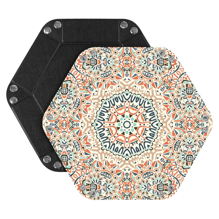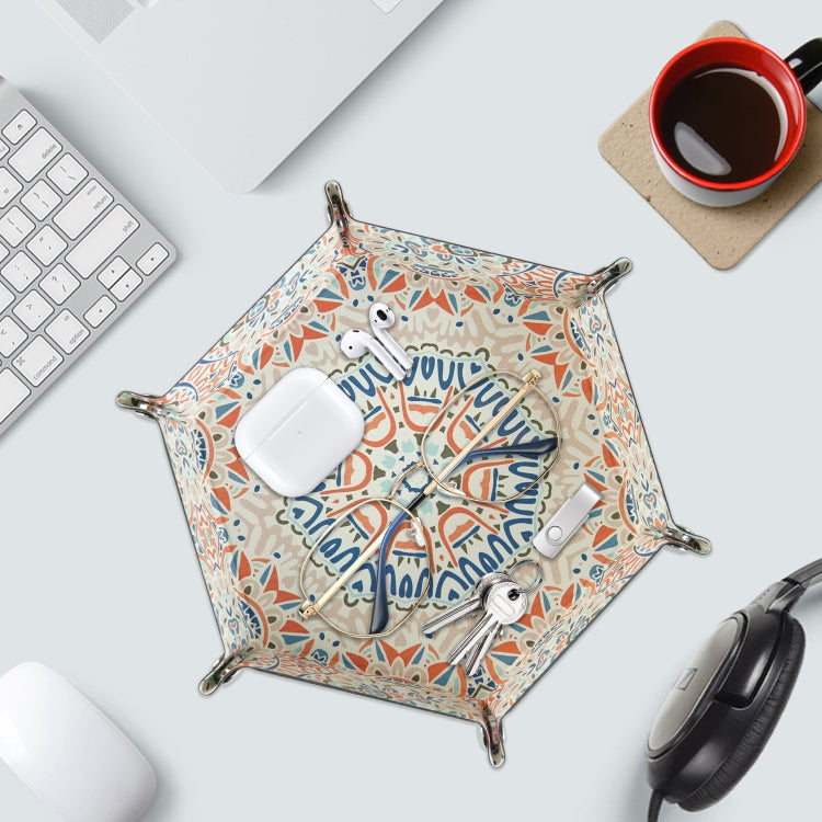 Hexagonal Desktop PU Storage Box Sundries Tray, Size:8 inch(Bohemian Orange)
