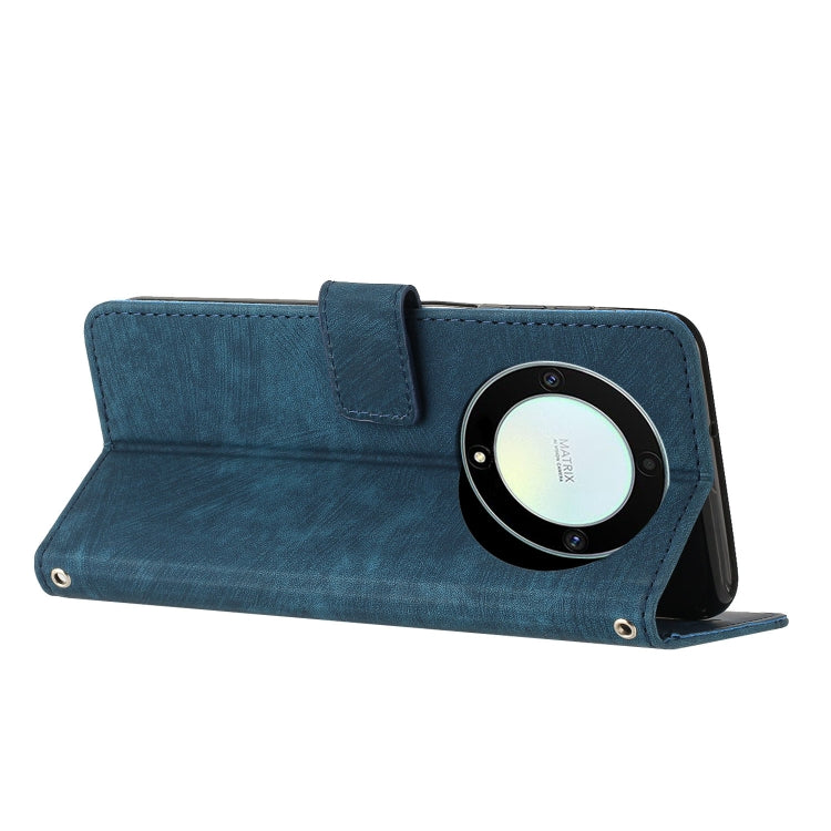Honor X9a 5G / Magic5 Lite Skin Feel Stripe Pattern Leather Phone Case with Lanyard(Blue)