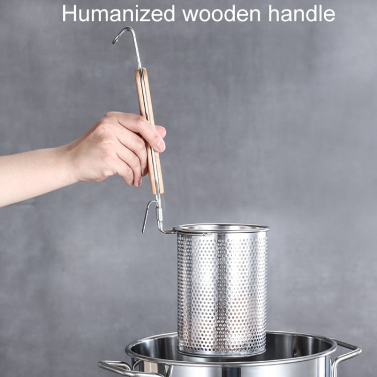 Household Stainless Steel Wooden Handle Spoon Kitchen Filtering Powder Oil Leakage Frying Basket, Model: 14cm Flat Handle
