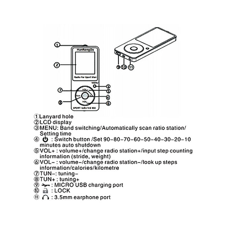 2. LCD display: temprature, pedometer, frequecy, voice, battery symbol