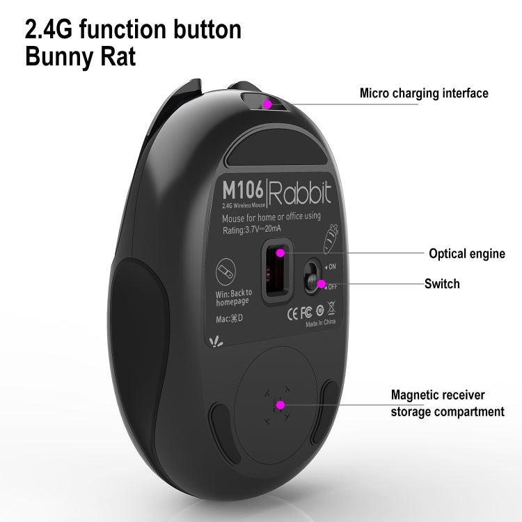 2. Remove the mini receiver installed at the bottom of the mouse and plug it into the USB port of the computer, free code, plug and play.