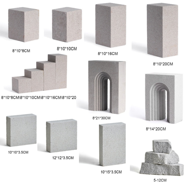 5. Dimensions: square column 8x8x10 cm, square column 10x8x12 cm, square column 10x8x16 cm, square column 10x8x20 cm, door 8x21x30 cm, door 8x14x20 cm, square 10x10x3.5 cm, square 12x12x3.5 cm, square 10x15x3.5 cm