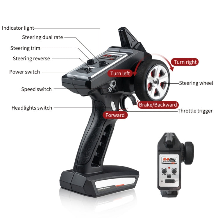 15. 2.4G full-scale synchronous remote control system. Full-scale throttle/steering, integrated ESC/receiver.