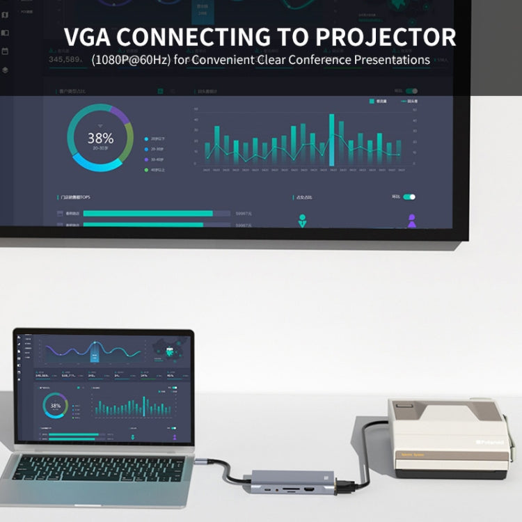 1. Extensive capability: 11-in-1 USB Type-C hub includes 1*Micro SD card reader, 1*TF card reader,1*USB 3.0 ports, 3*USB 2.0 Ports,1*Type-C PD charging port, 1*4K HDMI video output,1*VGA video output,1*3.5mm audio output,1*RJ45 Ethernet port.