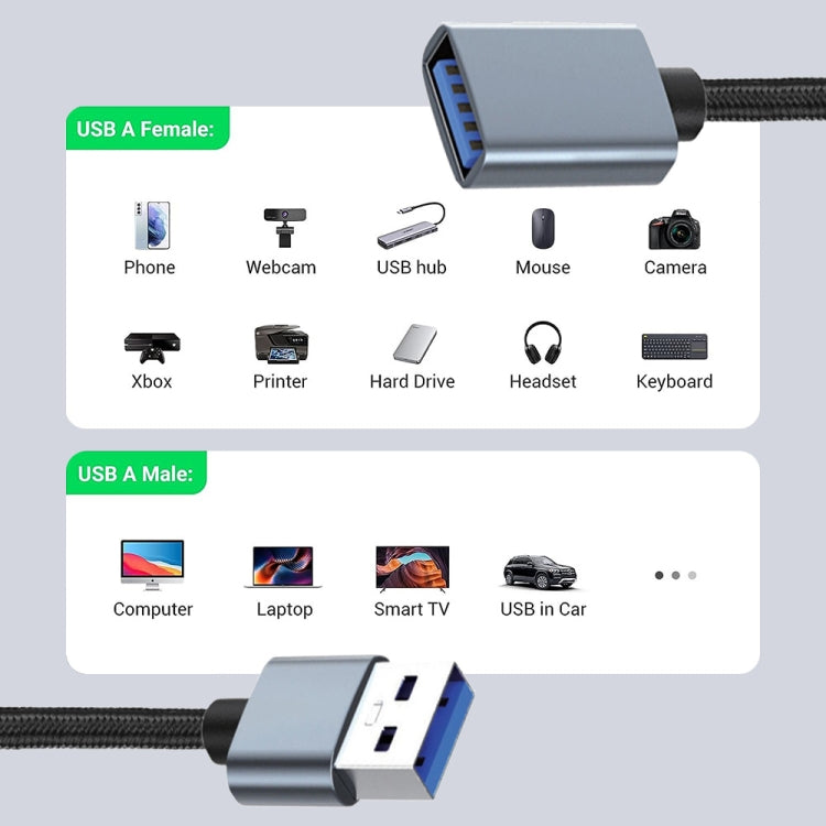 JUNSUNMAY 2A USB 3.0 Male to Female Extension Cord High Speed Charging Data Cable, Length:5m