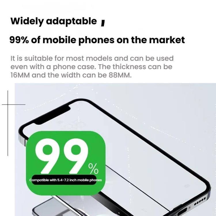 9. Applicable to most models, mobile phones with cases can also be used, the thickness can be clamped 16MM and the width can be 88MM