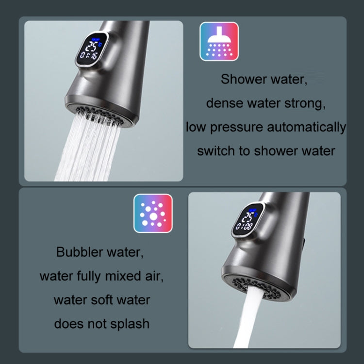 Kitchen Pull-out Universal Telescopic Hot & Cold Water Faucet, Specification: Copper Digital Display Black